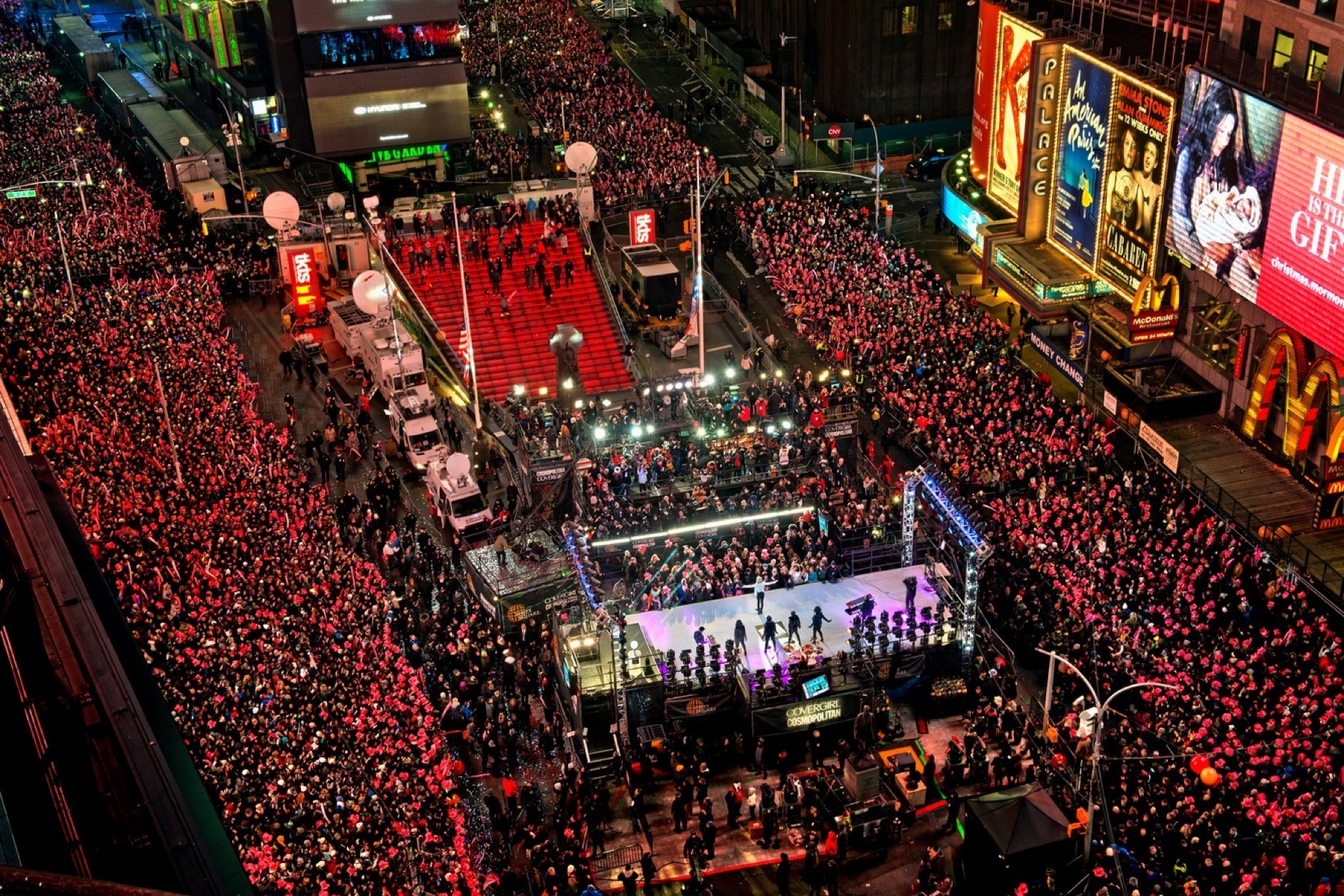Le célèbre Ball Drop de Times Square, avec la descente de la boule à minuit, reste l’événement le plus emblématique.